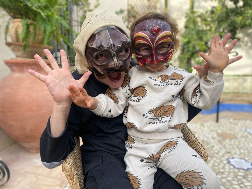 Mis hijos incorporaron estos y otros personajes a su imaginario personal. Las máscaras y figuras traídas del sur de Italia pasaron a formar parte de sus juegos habituales. Y, sin apenas darse cuenta, estaban aprendiendo historia, tradición, geografía, idiomas y, sobre todo, empatía. Porque convivir con personas de otros lugares, escuchar atentos historias de otros tiempos, conocer nuevas costumbres y compartir mesa con invitados de otros países es una lección diferente a la que se enseña en los libros.